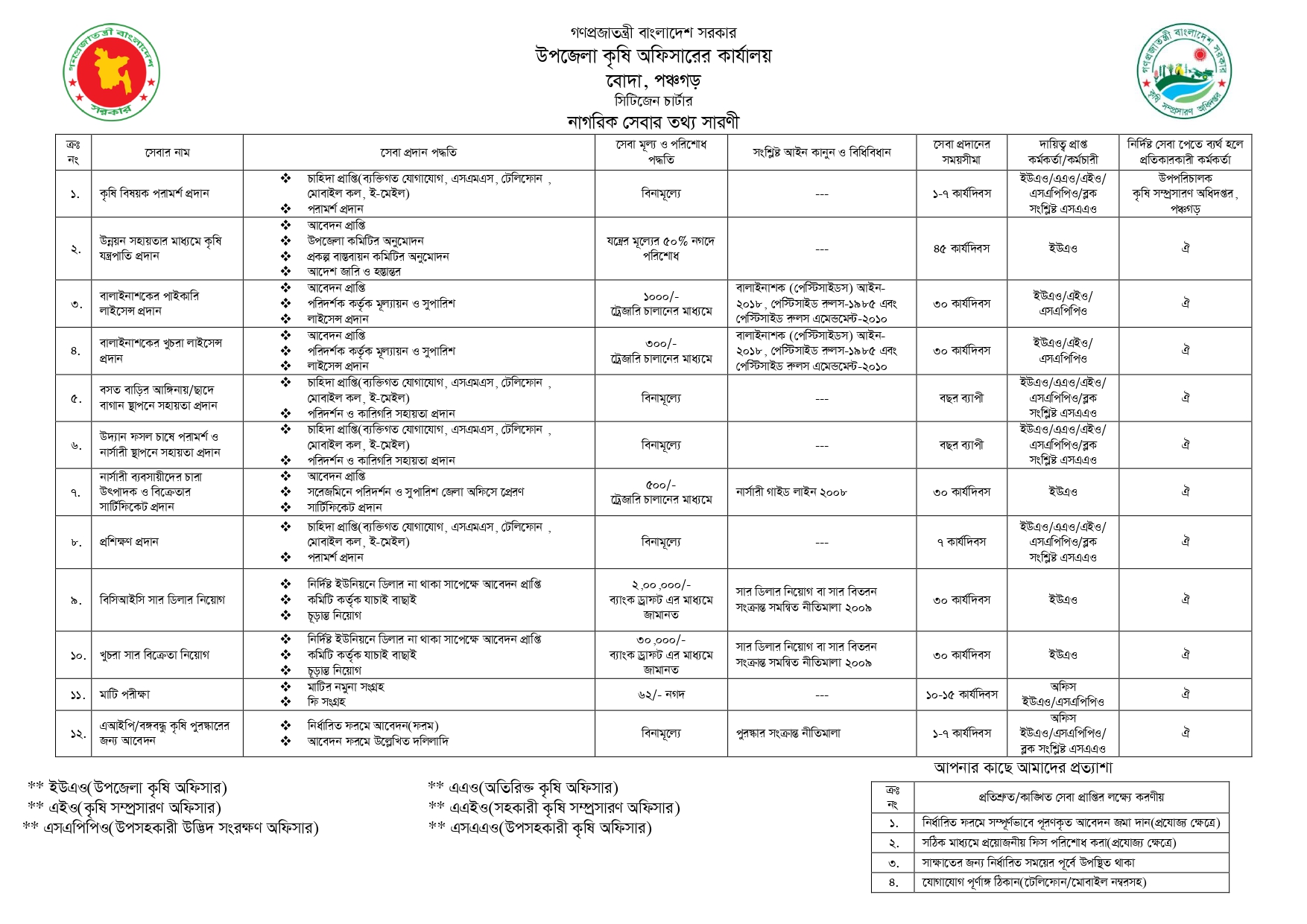 The Department of Agricultural Extension is a government service organization. The main responsibility of this department is to accelerate the pace of agricultural development by establishing links with various organizations / institutions involved in the agricultural development activities of this country through the transfer of modern and appropriate technology. About 24,000 officers and employees are working in this work from the center to the field level. In the field of technology transfer, the Department of Agricultural Extension has been providing services to the agriculture and farmers of this country by emphasizing the issues of agro-environment, socio-economic status of the farmers, market demand etc. The Citizen's Charter of the Department is as follows: